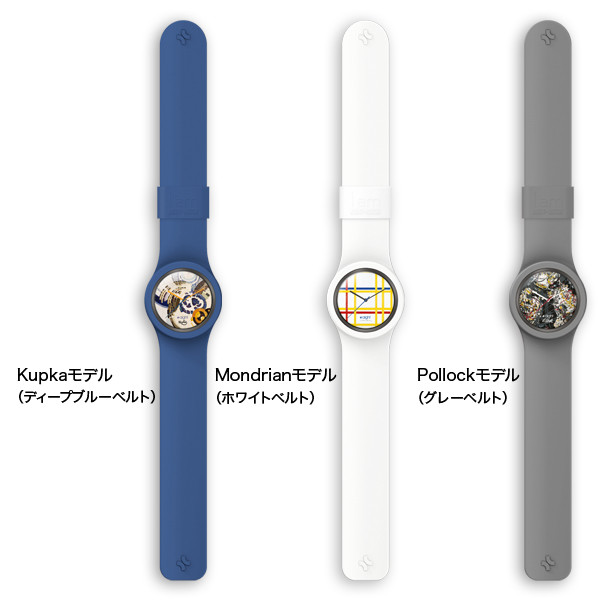 同館の収蔵作品の中でも人気の高い現代アート作家「František Kupka(フランティセック・クプカ)」、「Piet Mondrian(ピエト・モンドリアン)」、「Jackson Pollock(ジャクソン・ポロック)」の作品を文字盤のモチーフとした3タイプをご用意しています。