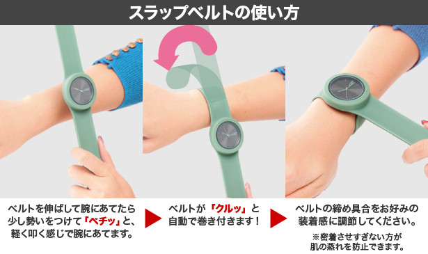 ・スラップベルト採用で最適な装着感を自分で調節できます。また、巻きつけられる場所であればどこにでも装着できるので、鞄の持ち手などに付けてファッションのワンポイントにもぴったりです。