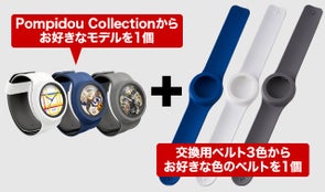 そして今回はポンピドゥーコレクションとベルト互換性のある「レギュラーモデル(1AMシリーズ)」もリターンの選択肢にご用意しました。 モダンなデザインとポップな色合いで、日常のファッションにオシャレな彩りを添えるモデルです。ポンピドゥーコレクションと同じ42ミリ直径のモデルで、時計本体・ベルト共に互換性がありベルトを付け替えて様々な色合いを楽しめます。製品仕様はポンピドゥーコレクションと同じですが、同梱される付属品はオリジナルクリーニングクロスとなります。