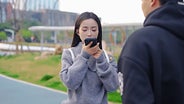 一方がイヤホンを装着し、もう一方がスマートフォンの画面を見ながら会話を進める翻訳機能です。イヤホンを装着した側は、相手の言葉をリアルタイムで音声翻訳により聞くことができ、スマホを持っている側は翻訳された内容を画面上でテキストとして確認できます。このモードの特徴は、音声とテキストの両方で翻訳を確認できるため、聞き逃しや言葉の誤解を防ぎ、より正確なコミュニケーションが可能になることです。
