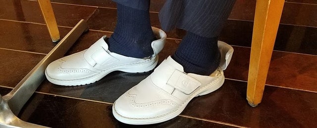 - 一念発起して試作と改良を重ね、踵を開くアイディアに到達しました。しかし靴を作る工場が有りません