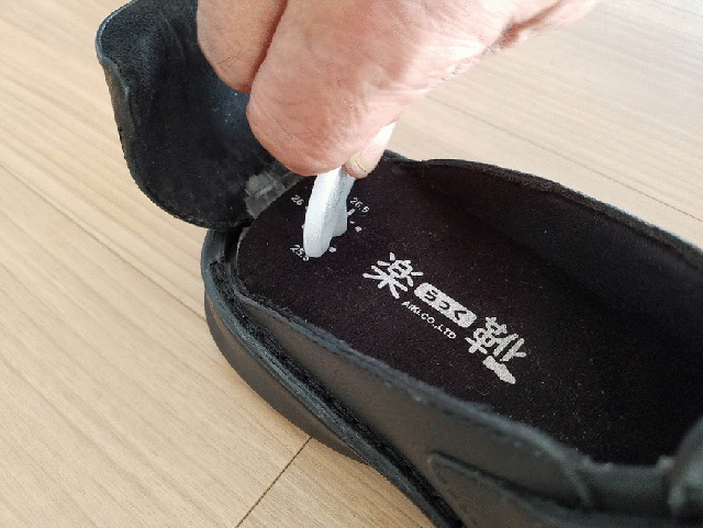 靴ベラが無くても、狭い所でも、かがむ必要なく瞬時に履けます。