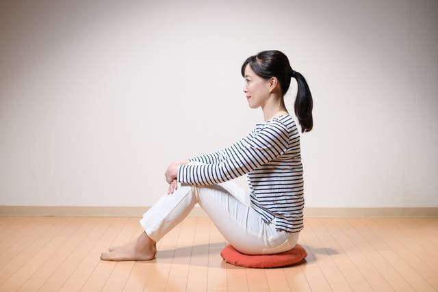 四万十ひのきの爽やか円座クッションを使用することで、骨盤が安定するので、姿勢が崩れにくくなり、自己の体重が分散されるため、腰回りの負担が軽減されます。また、円座前面の傾斜の助けもあり、自然と背筋が伸び姿勢がよくなり、長時間座ってもいい姿勢を保っていただけ、快適に座ることが出来ます。