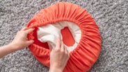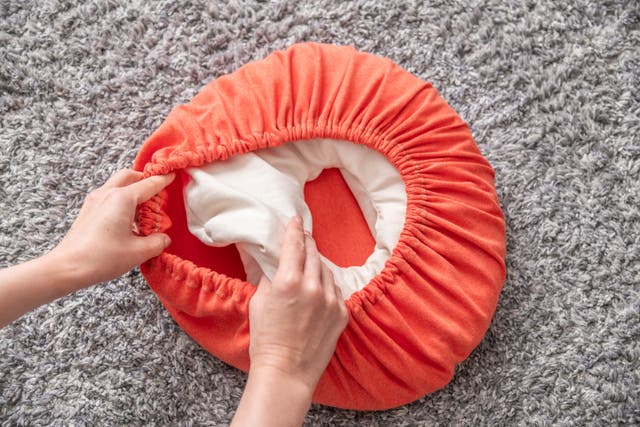 四万十ひのきの爽やか円座クッションには専用カバーがついてます。カバーは簡単に着脱可能で、ご自宅でお洗濯ができます。汚れたときなども洗濯できるので、あらゆる場面でご使用いただけます。