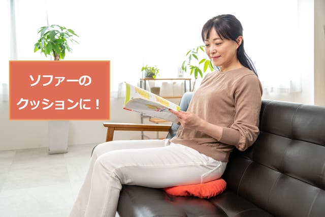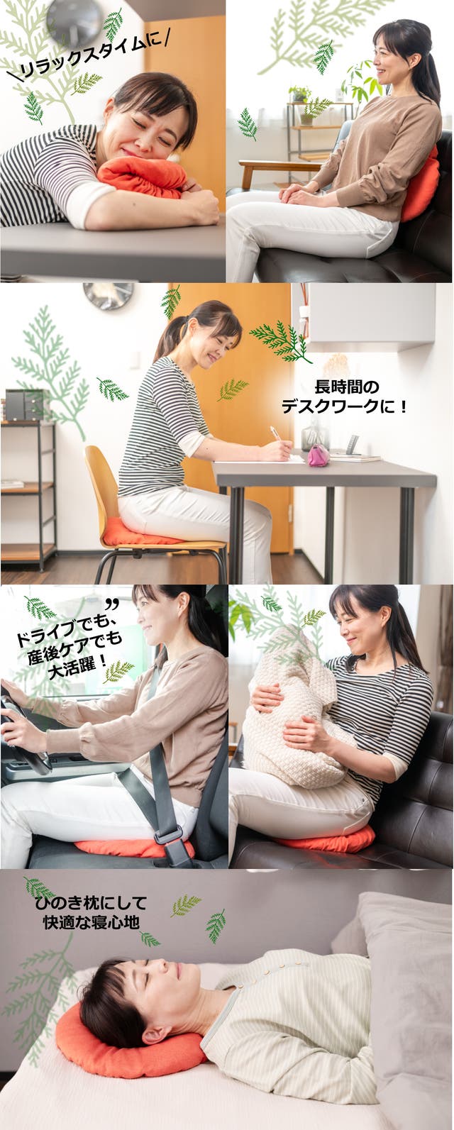 四万十ひのきの爽やか円座クッションに座れば、中身のチップが動いてさらに良い香りが楽しめます!円座クッションならではの座ると自然と背筋が伸びることはもちろん、独自製法によって約2㍉四方に加工したチップが自身の重みで移動するので、今までの円座に満足できなかった方でも、抜群の座り心地を実現!