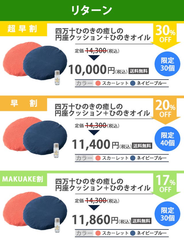 【Makuake割】四万十ひのきの爽やか円座クッションクッション+ひのきオイル