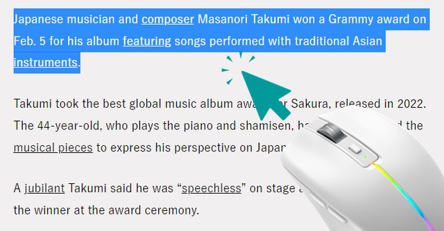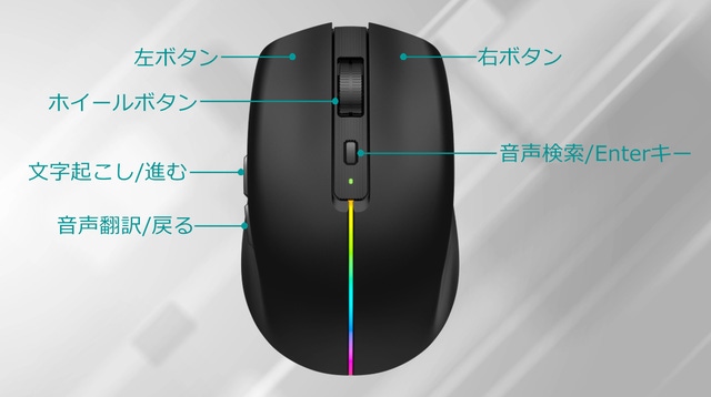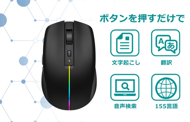 - ボタンを押すだけで、瞬時に文字起こし+音声検索+音声翻訳+写真翻訳できるAIマウス。