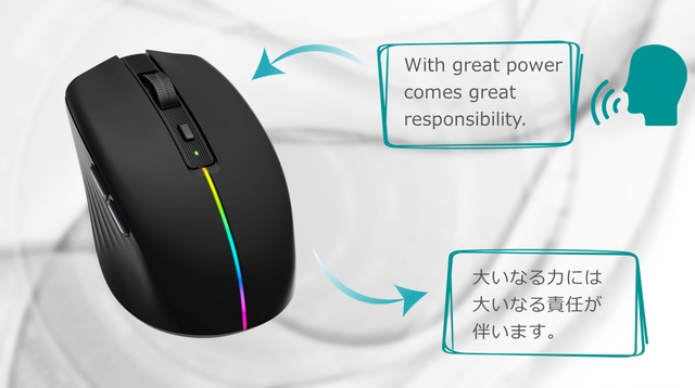 マウスに話しかけるだけで翻訳もしてくれます。さらには、メールや書類の翻訳まで全自動化実現。