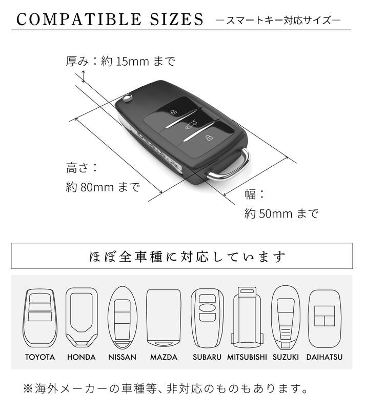 海外メーカーの車種等、非対応のスマートキーもございますので、必ず収納したいスマートキーのサイズをご確認ください。