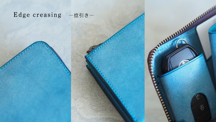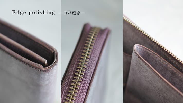 これによって、より高級感が漂う長財布になるとともに、コバ磨きもしっかりとできるため手触りの良い仕上がりになっています。