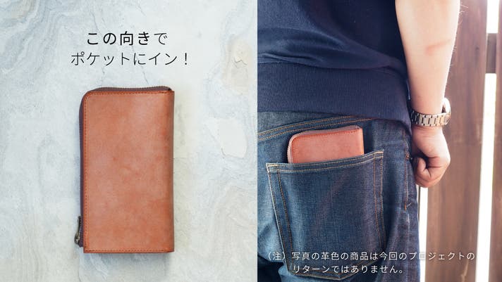 そこで「お札を折りたくない!」という人や長財布派の人にも、サッと車で出かけたいときに「スマホと“これ一つ”あれば安心」というアイテムをご提案できたらと思い、今回の長財布の制作をスタート。