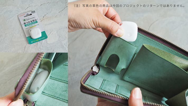 ●スマートキーポケットには、「Apple Air Tag」はもちろん、100円ショップのダイソーで発売された紛失防止タグも入るので、スマートキーを財布に収納しない場合にタグを入れておくと財布の紛失時も安心です。