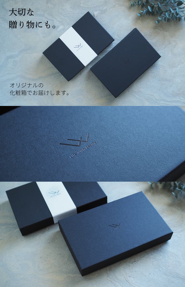 今回、長財布用に「革のある暮らし」のロゴマークの入った化粧箱をご用意いたしました。