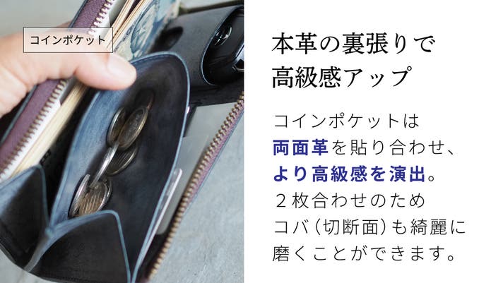 - 【改善ポイント】コインポケット部分に本革の裏張りを施し、高級感アップ!