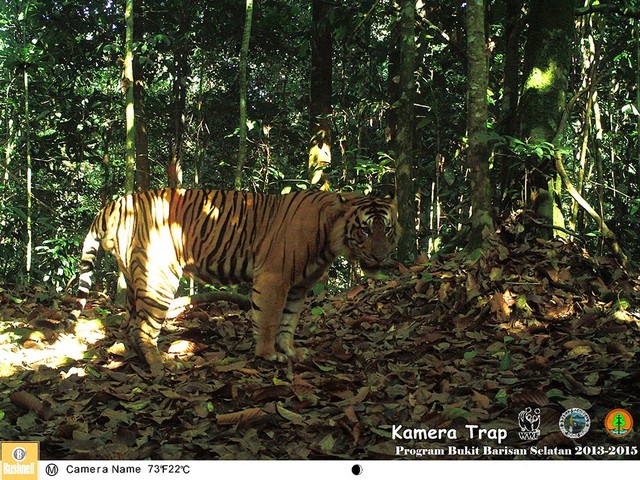 スマトラ島に生息するトラの亜種スマトラトラ。カメラトラップは構図の調整ができませんが、希にこうした素晴らしいカットが撮影されます。