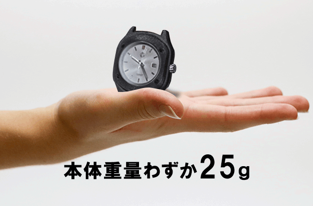 また、MIYOTAの高品質ムーブメントを採用しただけでなく、素材にPLAや炭素繊維を採用したことにより、テクノロジーとカーボンニュートラルを同時に実現しました。