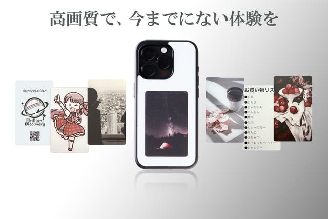 - お気に入りの画像を、いつでもどこでもスマホケースに高画質で表示。しかも充電不要