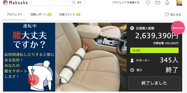 「Makuake(マクアケ)」は、実行者の想いを応援購入によって実現するアタラシイものやサービスのプラットフォームです。このページは、 プロダクトカテゴリの 「運転中、首と腰ツラくないですか?負担を和らげる「専用クッション」」プロジェクト詳細ページです。