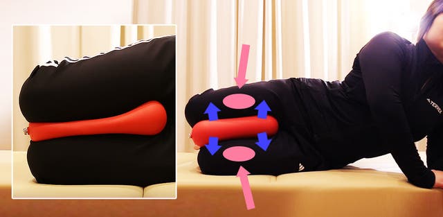 - バルブで簡単に空気を調節し、S字ラインにフィット。理想的なストレッチ&トレーニングを実現