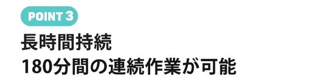 - 大容量バッテリーを組み合わせて、長時間使用することができます。