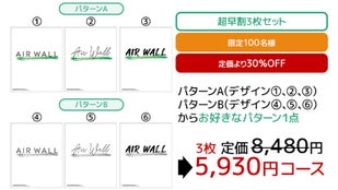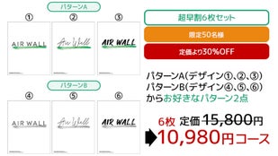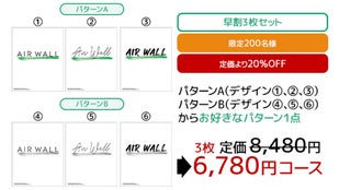 タイプ:パターンA(デザイン1、2、3の3枚セット)、パターンB(デザイン4、5、6の3枚セット)