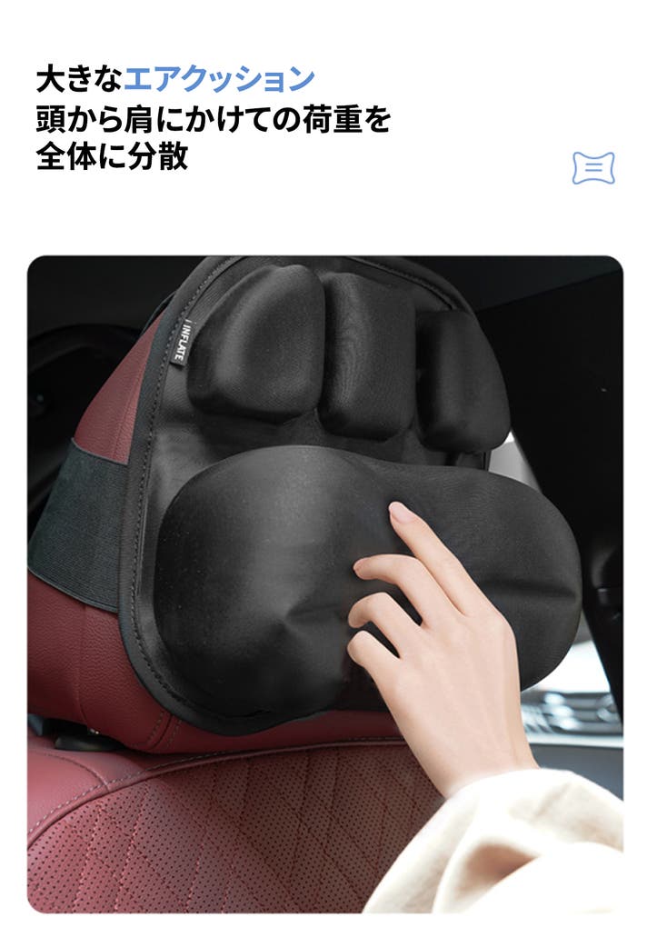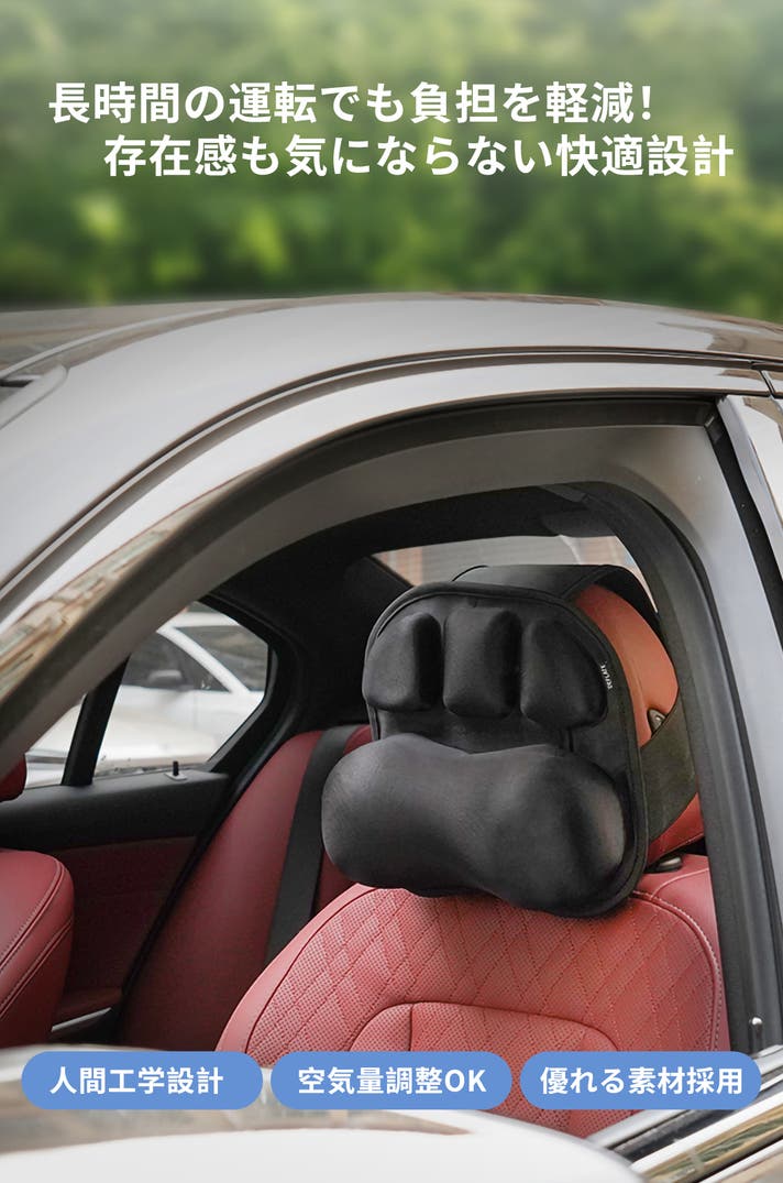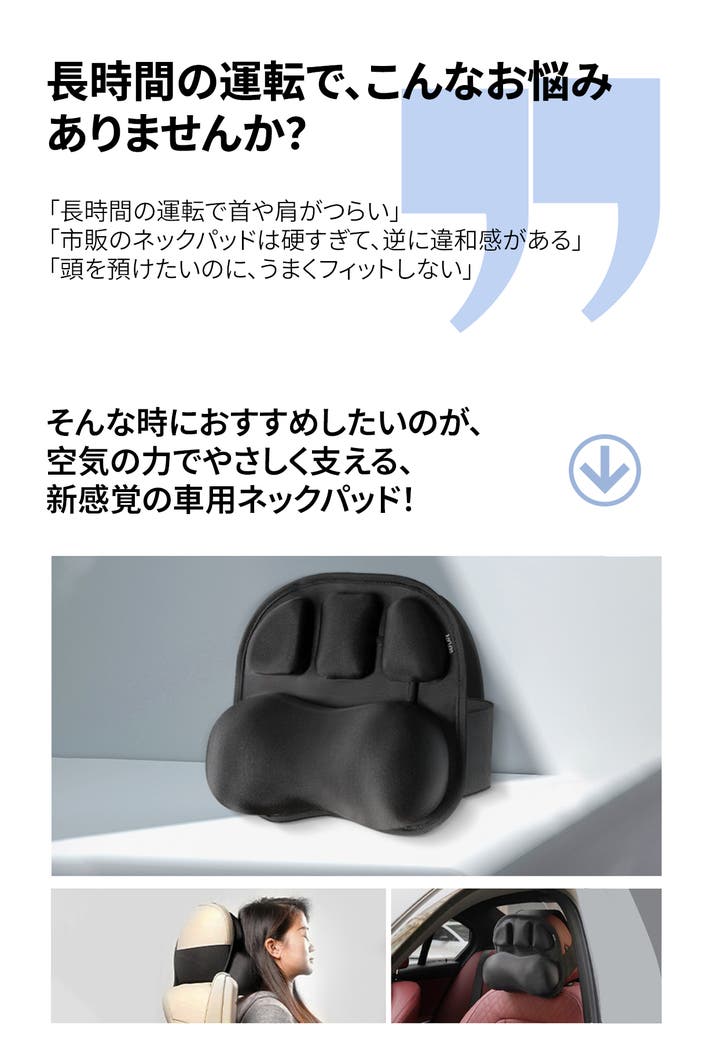 - 空気の力で首と頭をやさしく支え、長時間の運転でも負担を軽減!存在感も気にならない快適設計
