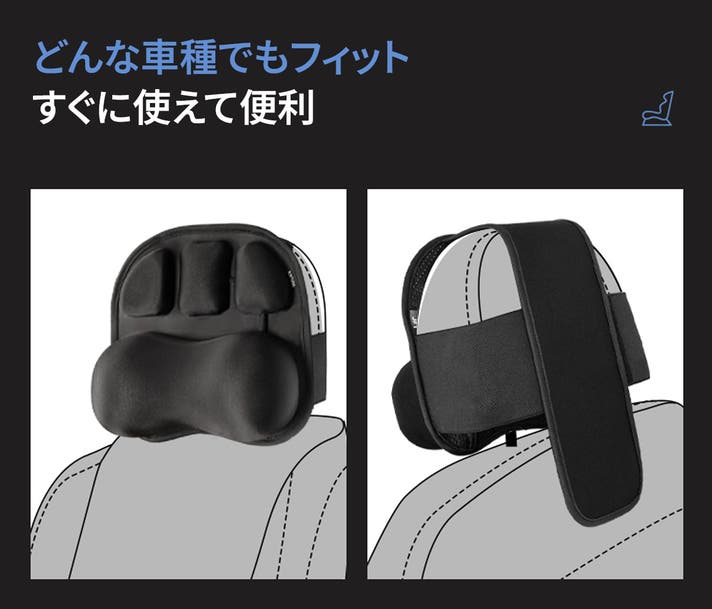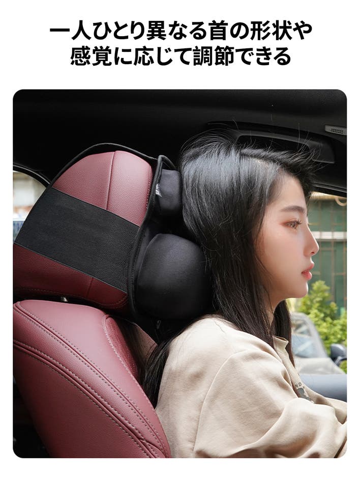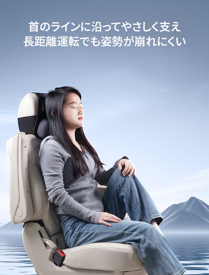 一人ひとり異なる首の形状や感覚に応じて調節できるため、運転者はもちろん、助手席や後部座席に座る方にも快適なサポートを提供します。