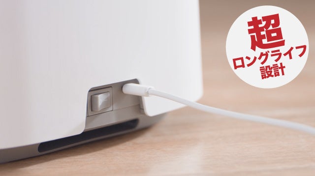 充電式なので、リビングやキッチン、バスルームの脱衣所などいろいろな所に置いておけます。
