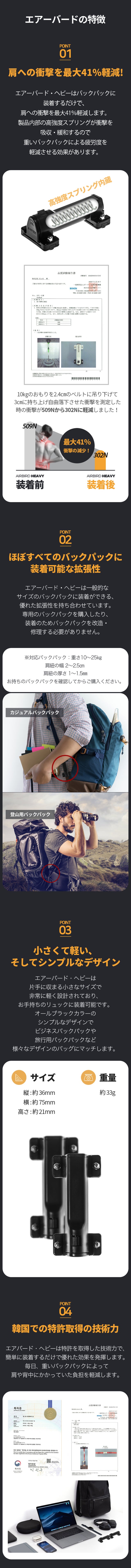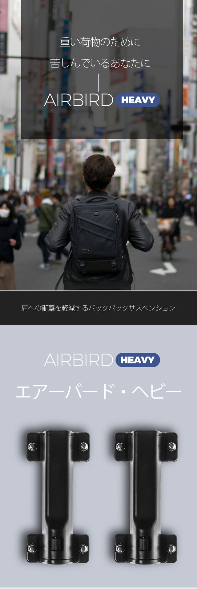 エアバードヘビーは装着するだけで肩と体に掛かるバッグの衝撃を緩和して体への負担を軽くするアイテムです。