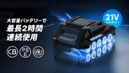 - ブラシレス21Vモーターとジェットエンジンブレードによる安定かつ高耐久のパフォーマンスを実現。