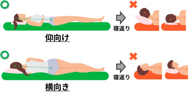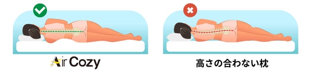 人間の体の構造上、仰向けの場合は低い枕、横向きの場合は高い枕が適切です。手動で高さを調節可能な枕が存在しますが、人間は寝ている間に何度も寝返りをするため、手動では効果がありません。