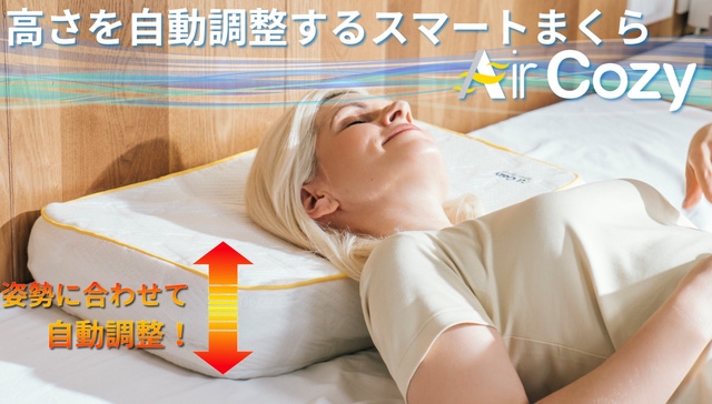 - 姿勢に合わせて"リアルタイム"で高さを"自動"調整するスマートまくら『Air Cozy』