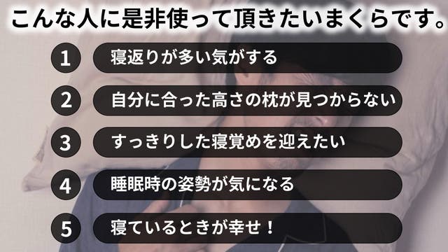 - 一晩で平均20回も打つ寝返り。向きが変わると首の高さも変わるため、自動調整する枕が必要でした。