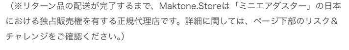 プロジェクトに関する情報 ・プロジェクトの属性:輸入商品 ・代理店によるサポート:代理店による、日本語カスタマー対応、保証等 ・プロジェクト実行者(国):中国 ・製品者(国):中国 ・製造者(国):中国 ※並行輸入品が発生する可能性があります。正規以外での個人輸入等は、完全に防ぐことができない場合がございます旨、予めご了承のほどお願いいたします。 ※並行輸入品は正規代理店による製品保証を受けることができません。また、正規代理店を通じて購入することで、日本国内での流通に必要な各種認証の取得や、関税の適切な処理が担保されます。 *使用感などに関しては、感じ方に個人差が予想される製品でございます。そのため、使用感等に関する返品・返金はお受けいたしかねます。 *初期不良以外に関する返品・返金は大変恐れ入りますがお受けいたしかねます。 *デザイン・カラー・素材などの仕様が一部変更になる可能性がございます。 *モニター環境によって、画像の色が実物と異なって見える場合がございます。 ※応援購入の数が想定を上回った場合、製造工程上の都合等により出荷時期が遅れる場合がございます。 ※皆様から想定を上回る応援購入を頂き、量産体制を更に充実させることができた場合、一般販売価格が予定価格を下回る可能性がございます。 ※本文中に記載させていただいたスケジュールは、あくまでプロジェクト公開時点の予定です。応援購入の性質上、配送遅延のおそれがございます。 原則として、配送遅延に伴う応援購入のキャンセルはできませんが、リターン配送予定月から3ヵ月を超えた場合には、希望者に限りキャンセルにて対応させていただきます。 以上の注意点につきましてあらかじめご理解とご了承いただいた上で応援購入くださいますよう、よろしくお願い申し上げます。 最後に、本製品を手に取った皆様に喜んでもらえるよう、プロジェクトチーム一同心を込めて対応させていただきます。