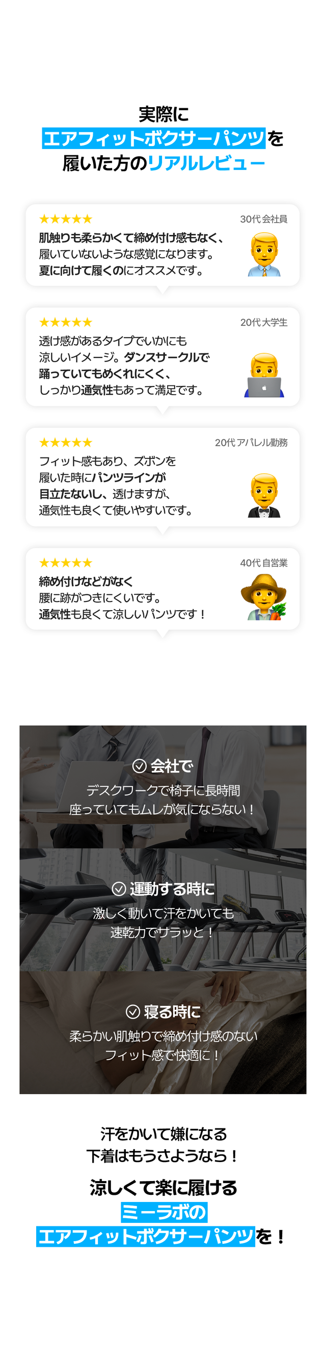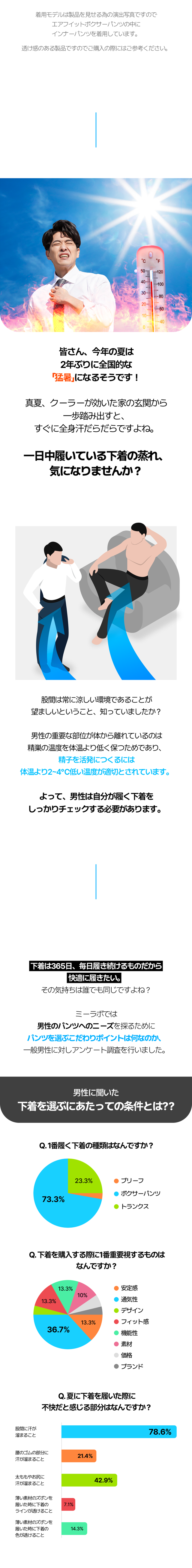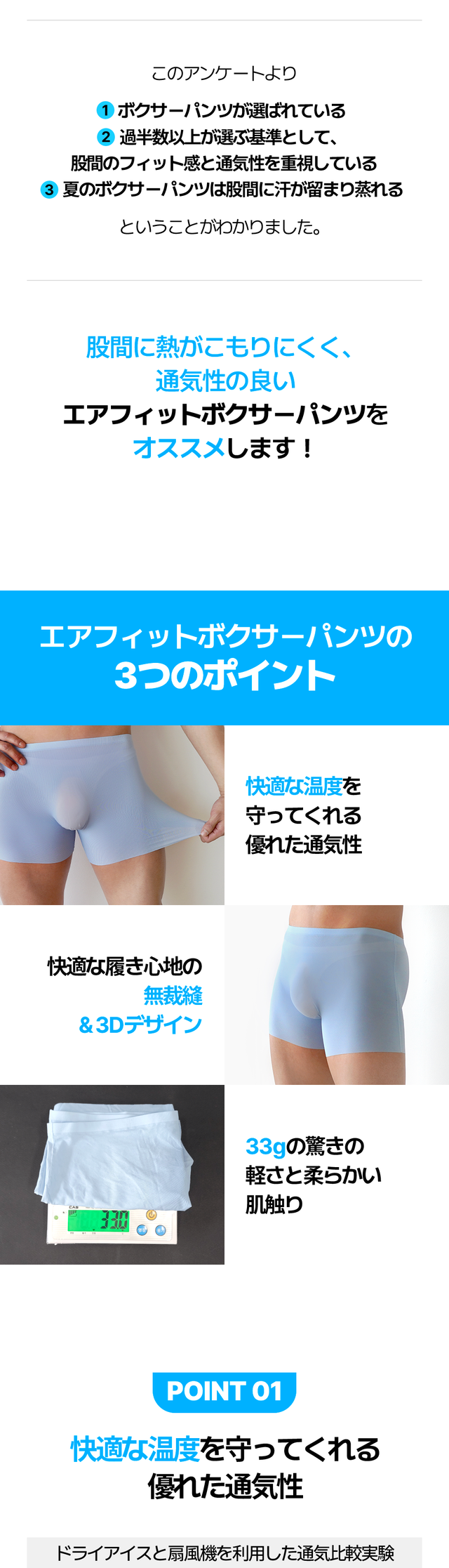 - 履いていないような感覚に優れた通気性でムレずに快適に男性の温度をしっかり守ってくれる!