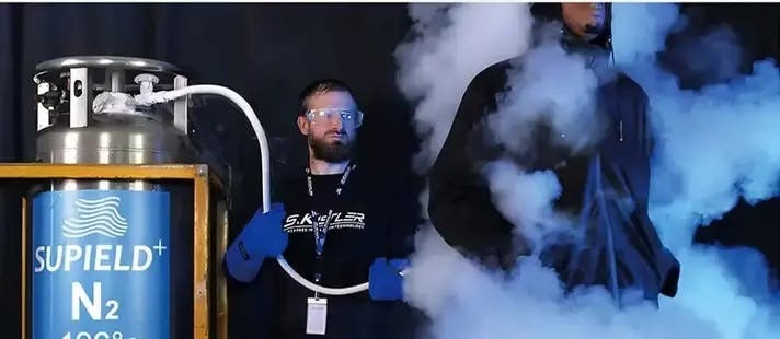 ‐195℃の液体窒素を吹きかける実証実験