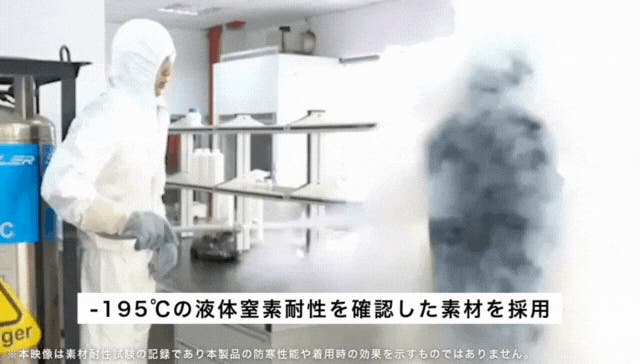 ※本映像は素材耐性試験の記録であり、本製品の防寒性能や着用時の効果を示すものではありません。
