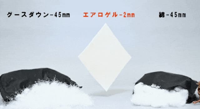 エアロゲルは断熱性と軽量で動きやすさに優れ、宇宙で-170~+110℃の過酷な環境下で宇宙服等に使用されている素材です。魅力的な素材ですが、開発コストが高く、一般に普及するのは難しいとされていました。