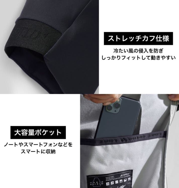 を遮り、心地よく呼吸する。 高機能な防風素材と透湿膜の特殊構造が、冷たい風をシャットアウト!身体を確かな温もりで包み込みます。