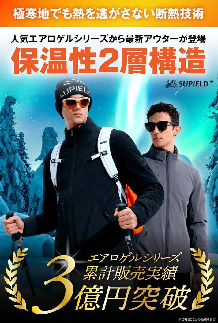 シリーズ累計販売額3億円を突破した「エアジャケット」シリーズから、最新モデルが登場!宇宙服素材の「エアロゲル」を採用した、先端防寒アウタ――それがエアロゲルアウター V1です。