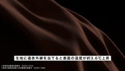 SPACE HEAT技術で加工された生地と一般的な生地を29℃室内環境下で、ハロゲンランプで加熱する実験を行なっています。加熱開始してから約1分後、SPACE HEAT技術で加工された生地が有効的に熱を吸収し、表面温度をキープしていることが確認できます。(※自社従来品との比較)