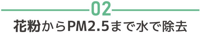 - 水の力を利用して花粉やPM2.5を吸着し、きれいな空気を提供!