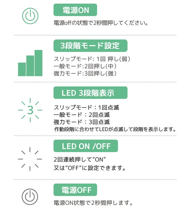04. 本体の電源ボタンをタッチし、エアグリーンをオンにします。