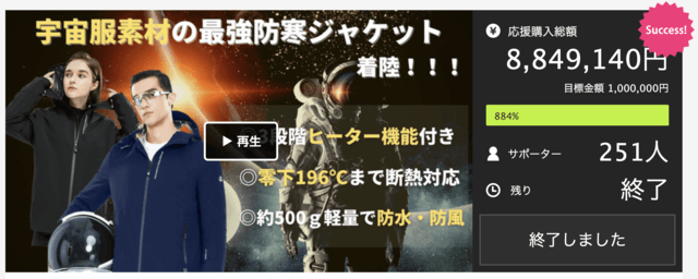 現在218人から支援されているNASAの宇宙服素材を使用した最強ビジネスコートLighter2021(URL:https://www.makuake.com/project/lighter2021)です。