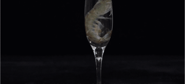 ※検証のためにエビを1分間ドライアイス上に置く実験しています、危険ですのでマネしないでください。