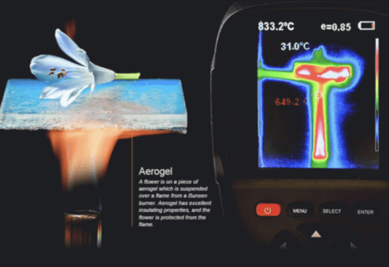 実はエアロゲルの断熱性は寒さだけではなく、熱も遮ります。