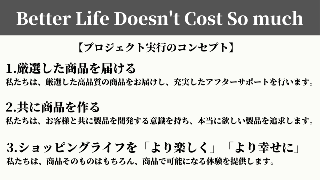 今後は世の中にある『良い製品』を厳選し、皆さまにお届けいたします。応援を宜しくお願い致します。