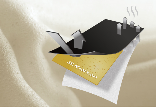そして、エアロゲルの下には吸湿性・通気性バツグンの層があります。