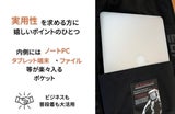 ビジネスにも使いたい方にとっては非常に便利です。ノートPC、タブレット端末、ファイルや本など、楽々入ります。荷物の少ないときはカバンをもっていかなくてもOK~