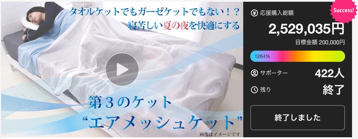 「Makuake(マクアケ)」は、実行者の想いを応援購入によって実現するアタラシイものやサービスのプラットフォームです。このページは、 プロダクトカテゴリの 「熱帯夜にエアコン併用で快適な睡眠環境をサポート!冷気を取り入れ放熱する新ケット」プロジェクト詳細ページです。
